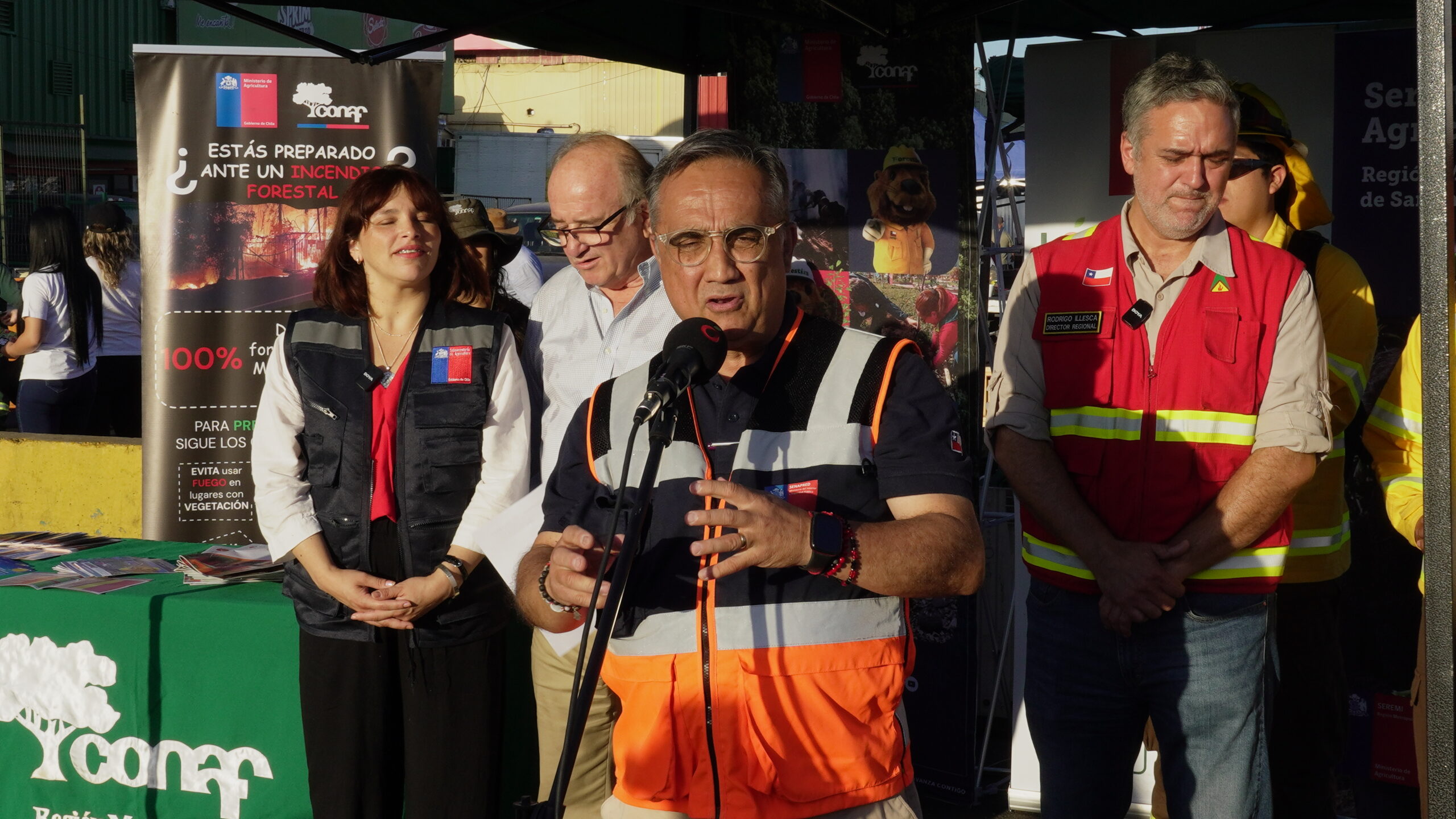 Autoridades regionales lanzaron campaña de prevención de incendios forestales en el Mercado Mayorista Lo Valledor, con el objetivo de concientizar a agricultores, productores y comerciantes sobre los riesgos asociados a la temporada de alto calor. La Seremi de Agricultura, Monserrat Candia, junto con Rodrigo Illesca, director de CONAF, Miguel Muñoz, director de SENAPRED RM, y Gonzalo Bravo, administrador general del mercado, hicieron un llamado a la comunidad a reforzar las medidas de autocuidado para evitar siniestros.