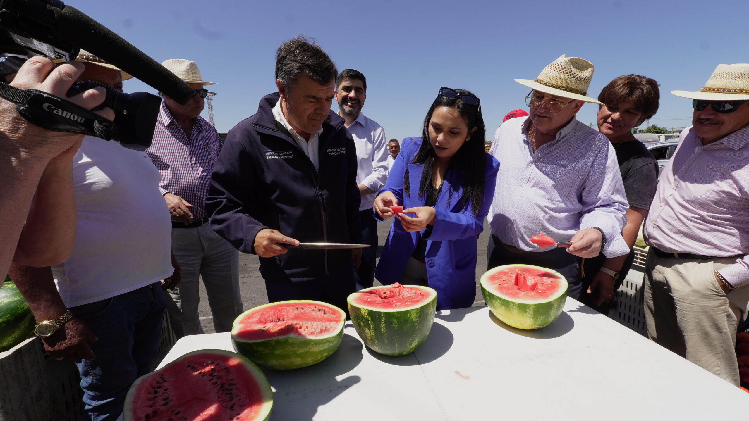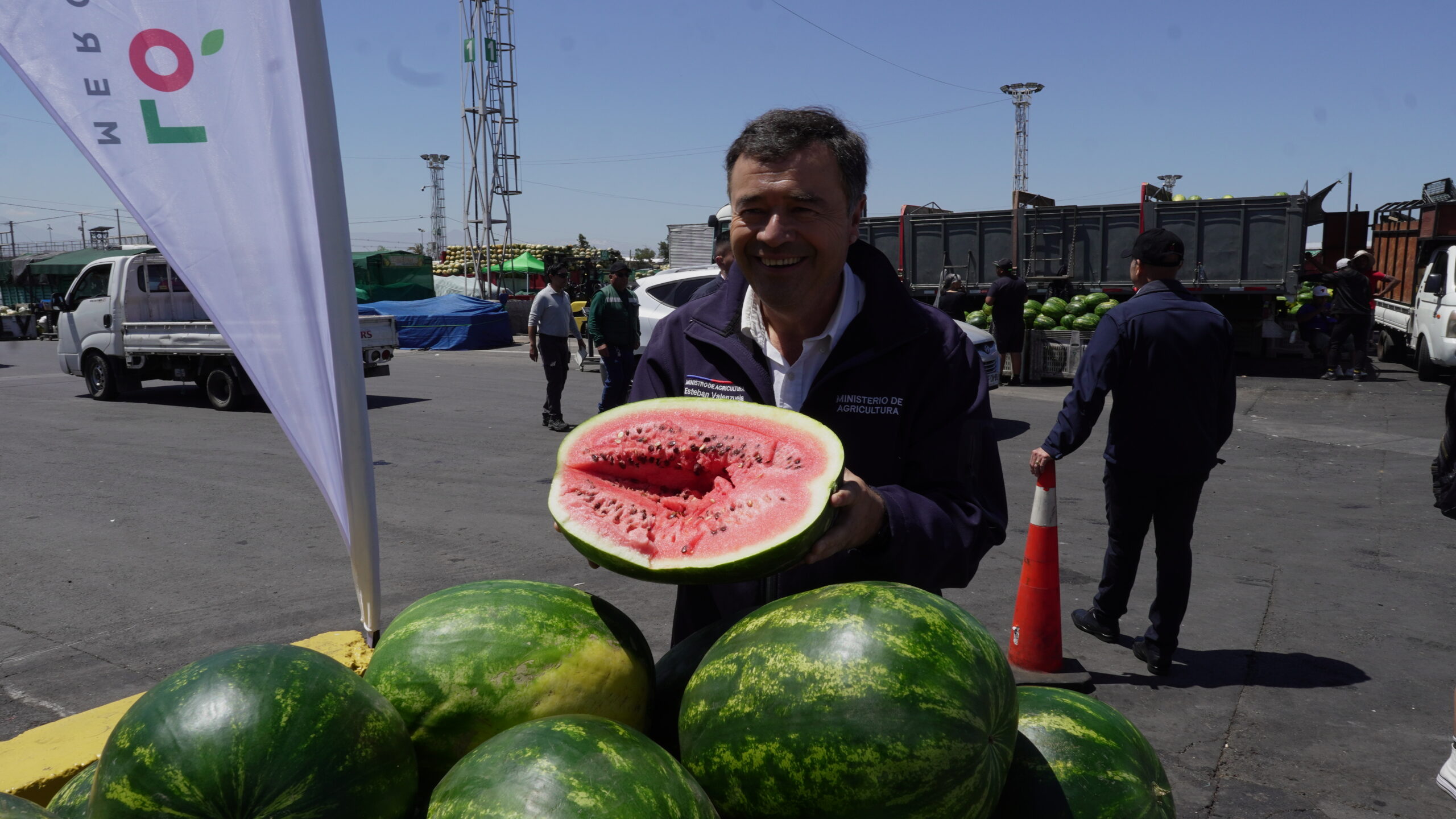 “La sandía de la zona central, de Paine, es un producto excepcional. Tiene calorías moderadas, vitaminas A, B y C, también está demostrado que es un aporte importante para el control del cáncer a la próstata”, señaló el secretario de Estado.