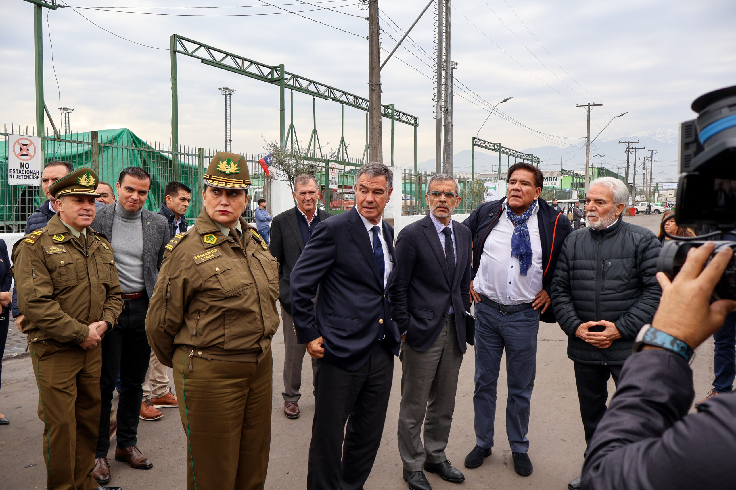 La seguridad como pilar fundamental». Con ese enfoque, el presidente del Senado, Manuel José Ossandón, y el ministro de Seguridad Pública, Luis Cordero, visitaron el Mercado Mayorista Lo Valledor, donde recorrieron sus instalaciones y conocieron en detalle las modernas medidas de control implementadas. Cámaras en todo el recinto, torniquetes de acceso, reconocimiento facial y monitoreo centralizado forman parte de una gestión que busca proteger un espacio clave para el abastecimiento nacional.