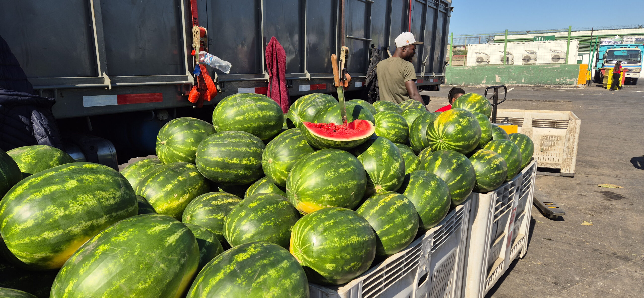 Grandes, muy dulces y de calidad, los primores de sandía de Paine, traída específicamente desde las cercanías de la laguna de Aculeo, ya están disponibles en el Mercado Mayorista Lo Valledor.